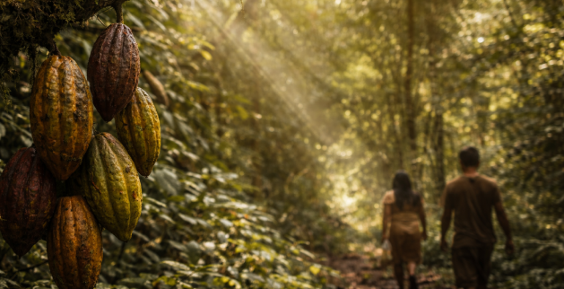 En el corazón intacto de la Amazonía de Bolivia, el cacao no se cultiva en plantaciones intensivas: nace libre, silvestre, protegido por el bosque. Las comunidades indígenas caminan senderos heredados por generaciones, reconociendo cada árbol, cada ciclo de lluvia, cada momento exacto en que la mazorca alcanza su madurez.
